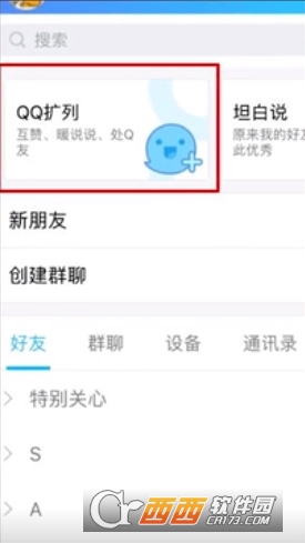 联系人功能处,QQ扩列打开即可