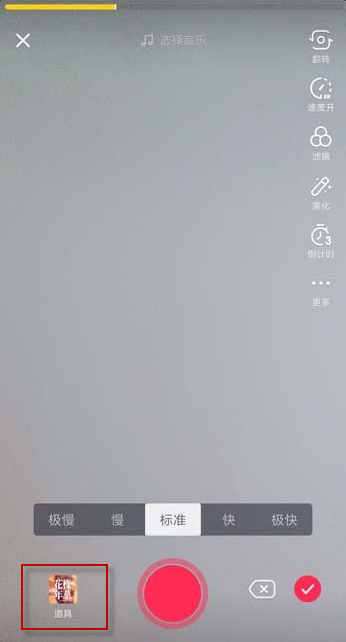1、在主界面选择【+】号,进入抖音的拍摄界面,在拍摄界面选择左下角的【道具】功能;