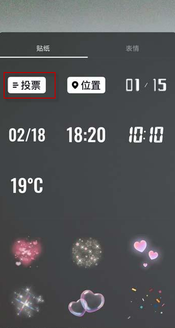 3、从贴纸中找到【投票】设置贴纸;
