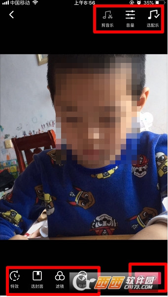 3、如此一来,再进入编辑界面设置配乐、特效、音量、贴纸等效果,就可以成功制作出“影集”视频了,感兴趣的朋友都可以试试。