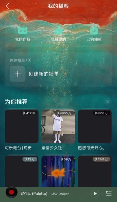 进入我的页面,在昵称下方即可看见我的播客,点击