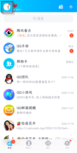 1、打开手机qq,点击左上角的头像;