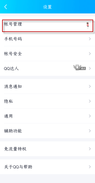 3、在设置界面点击账号管理;