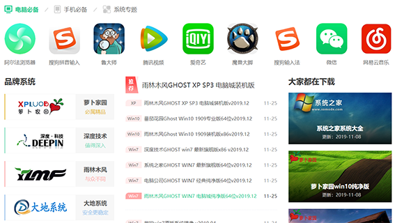 萝卜家园、深度技术、雨林木风、大地系统、电脑公司、番茄家园、系统之家