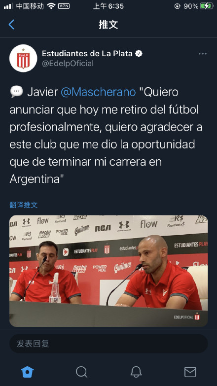 “我宣布从今天开始,我的职业生涯就此结束。我很感谢俱乐部给我这个机会在这里退役。”