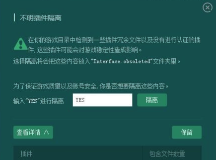 5、若有弹窗显示“不明插件隔离”AtlasLootClassic、DBM等,请点保留
