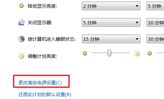4、接下来,在弹出的界面中点击“更改电源高级设置”选项,进入高级电源设置选项,在Windows8系统中可能操作略有改变。