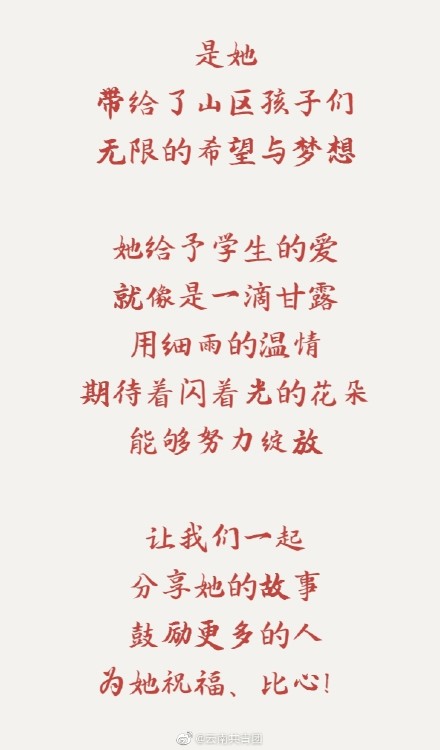 张桂梅每天只睡三四个小时 海玲 2020-12-12 12:09:27 阅读() 来源: 出处: 评论() 【#张桂梅每天只睡三四个小时#,只为给山里人一个骄傲】“我的时间越来越少了,我抢一分钟算一分钟。”12年来,为让女孩们走出大山,身患20多种疾病的云南华坪女高校长张… 【#张桂梅每天只睡三四个小时#,只为给山里人一个骄傲】“我的时间越来越少了,我抢一分钟算一分钟。”12年来,为让女孩们走出大山,身患20多种疾病的云南华坪女高校长张桂梅,每天只睡三、四个小时。如今,她脚步变慢了,嗓门也变小了。她说:“在我活着的时候,我一定要看到她们出去。”致敬! 注:以上文章内容均来自于投稿,不代表藕池网立场,如若转载请联系原作者。