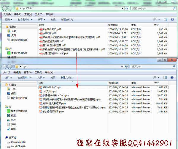 最后看下小编本次的转换文件列表截图,上方的文件夹里面是几个pdf文件,截图下方的文件夹显示的是转换后的pptx格式的PPT文件。那么本次操作完成。话说要注意一点,在软件右下方也有提示,扫描的图片PDF不能转换为可编辑的PPT。